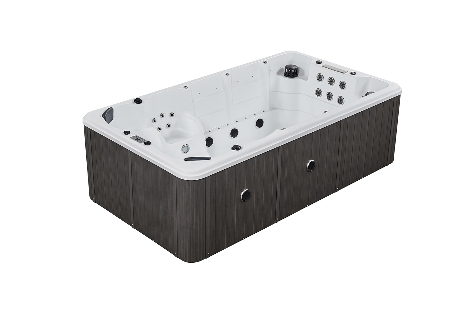 This pool combines swimming and massage functions, offering multiple uses in one. After swimming, relax in the massage area with ergonomically designed seats and powerful jets targeting key acupoints to ease muscles and boost your mood. Equipped with smart temperature control, endless swim system, massage, sterilization circulation, and time and temperature settings. With its stylish design and high-performance features, it's ideal for both home and commercial use
