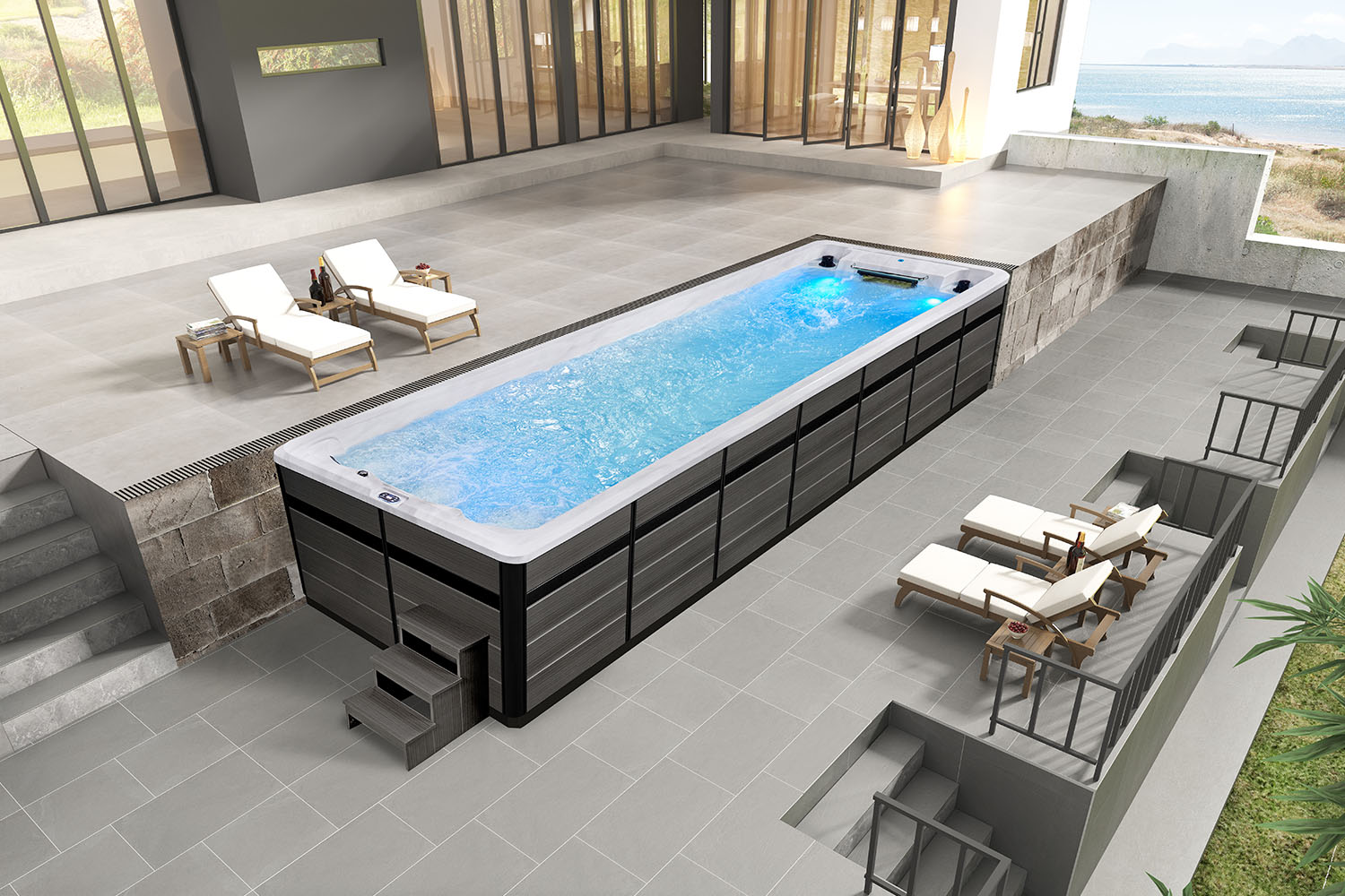 Stylish endless pool with simple design and powerful propeller. The 12-speed swimming training system offers adjustable resistance for all levels. Swim endlessly and enjoy water fun at home without going to the pool or ocean
